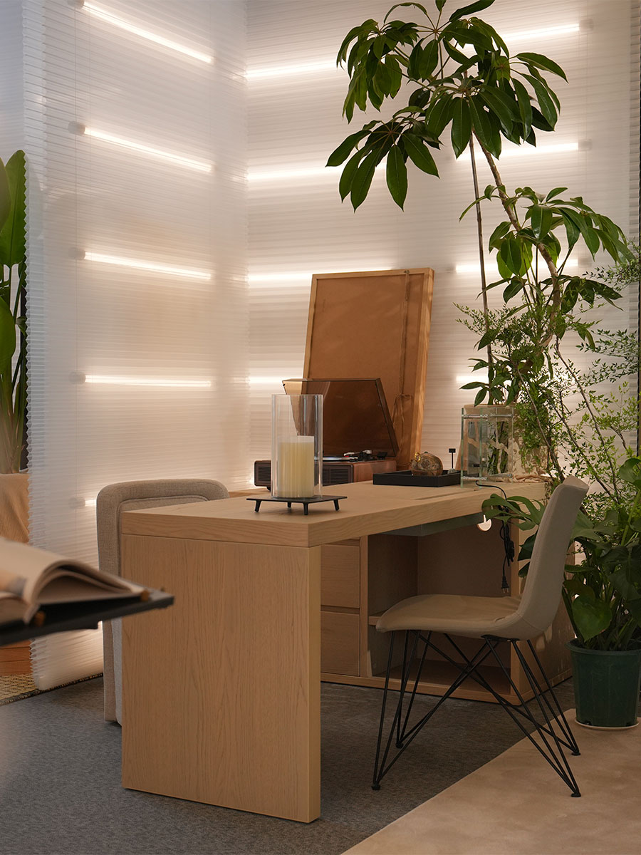 這不是一個(gè)傳統(tǒng)的家居展廳,在這里,沒有“焦點(diǎn)”,沒有哪個(gè)展品會(huì)搶走你的視線,反而每一步,都有新的風(fēng)景。