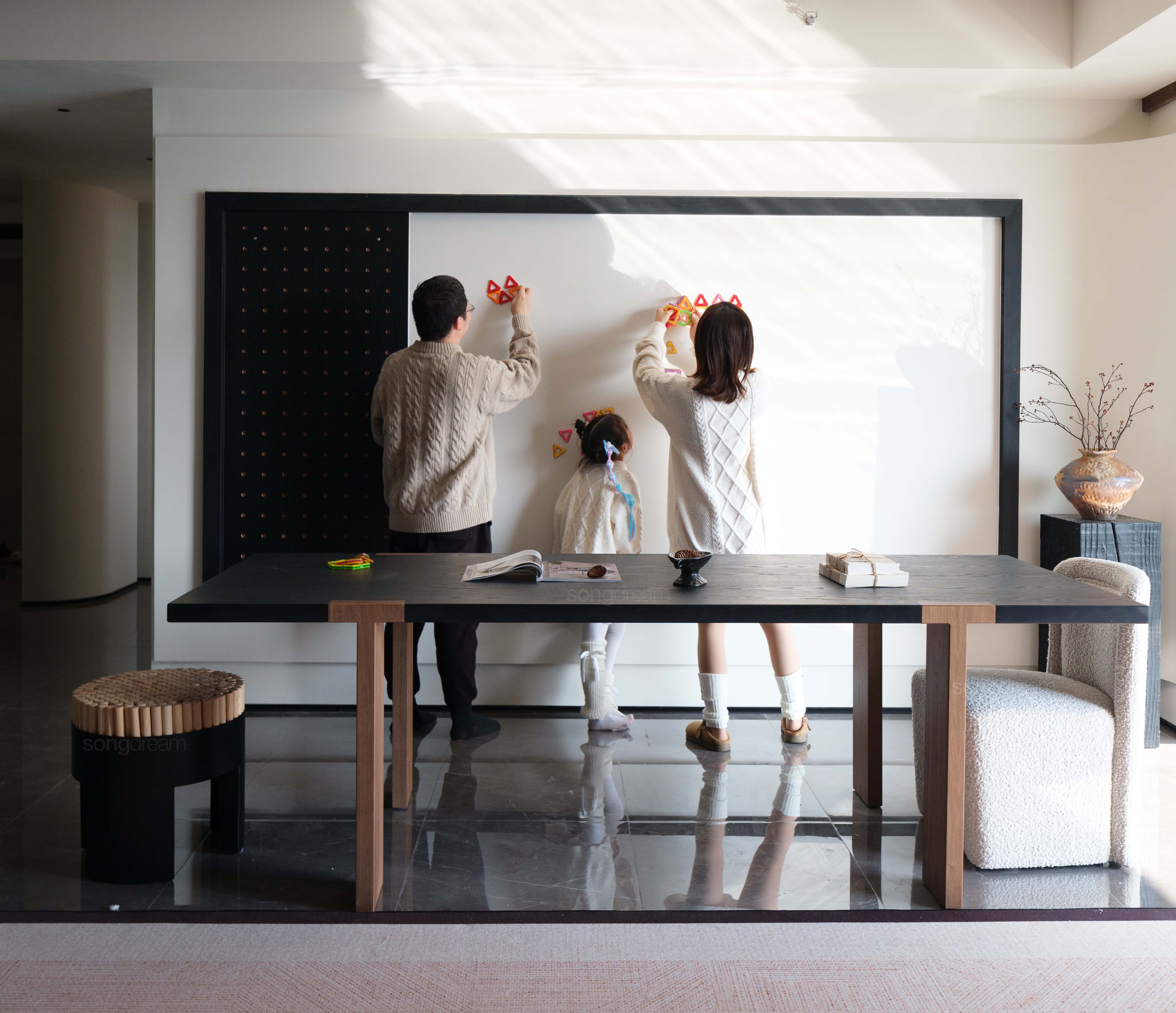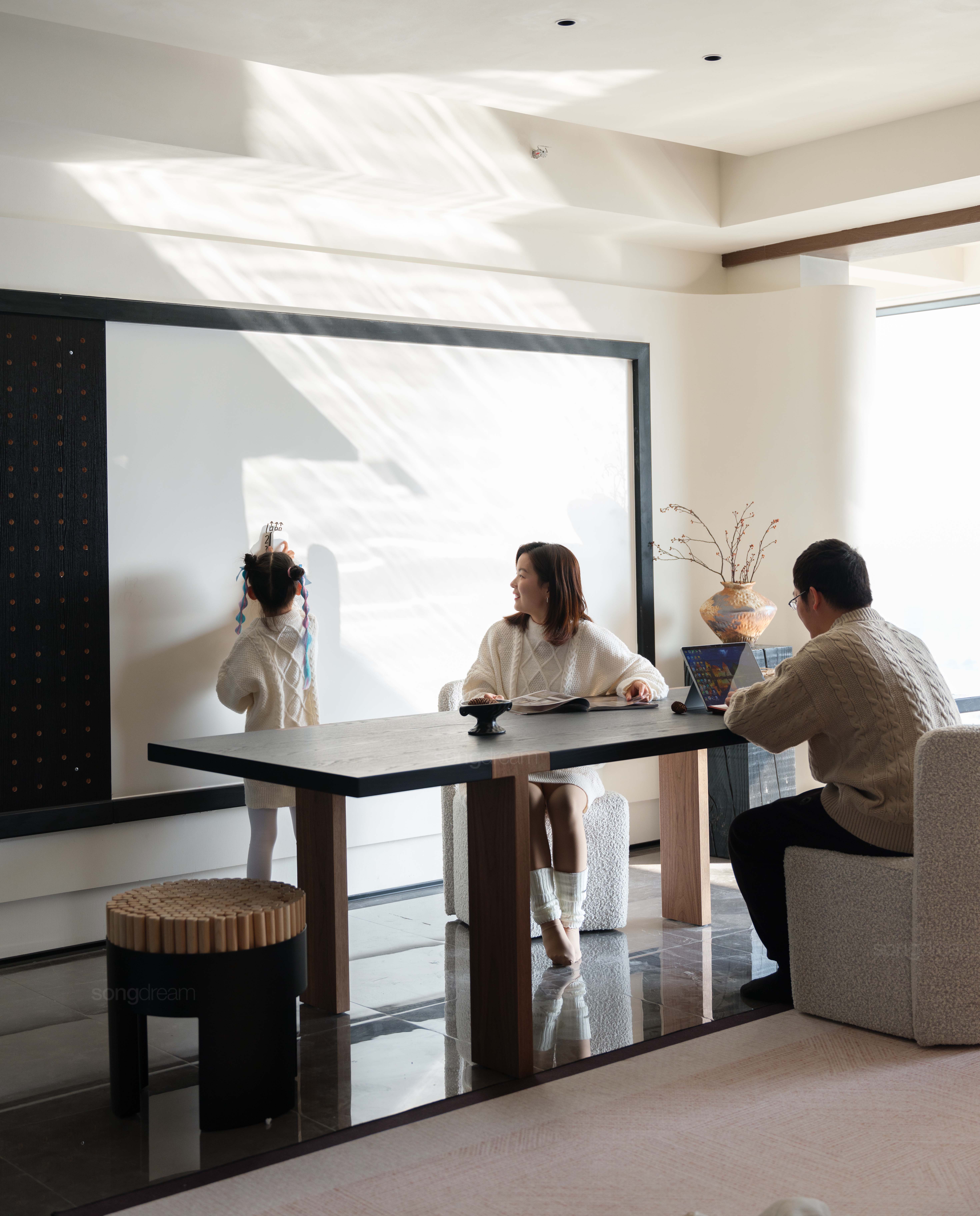 本案以「中古侘寂」為精神內(nèi)核,摒棄浮華,回歸質(zhì)樸與寧靜,打造以人為本的多功能親子空間。