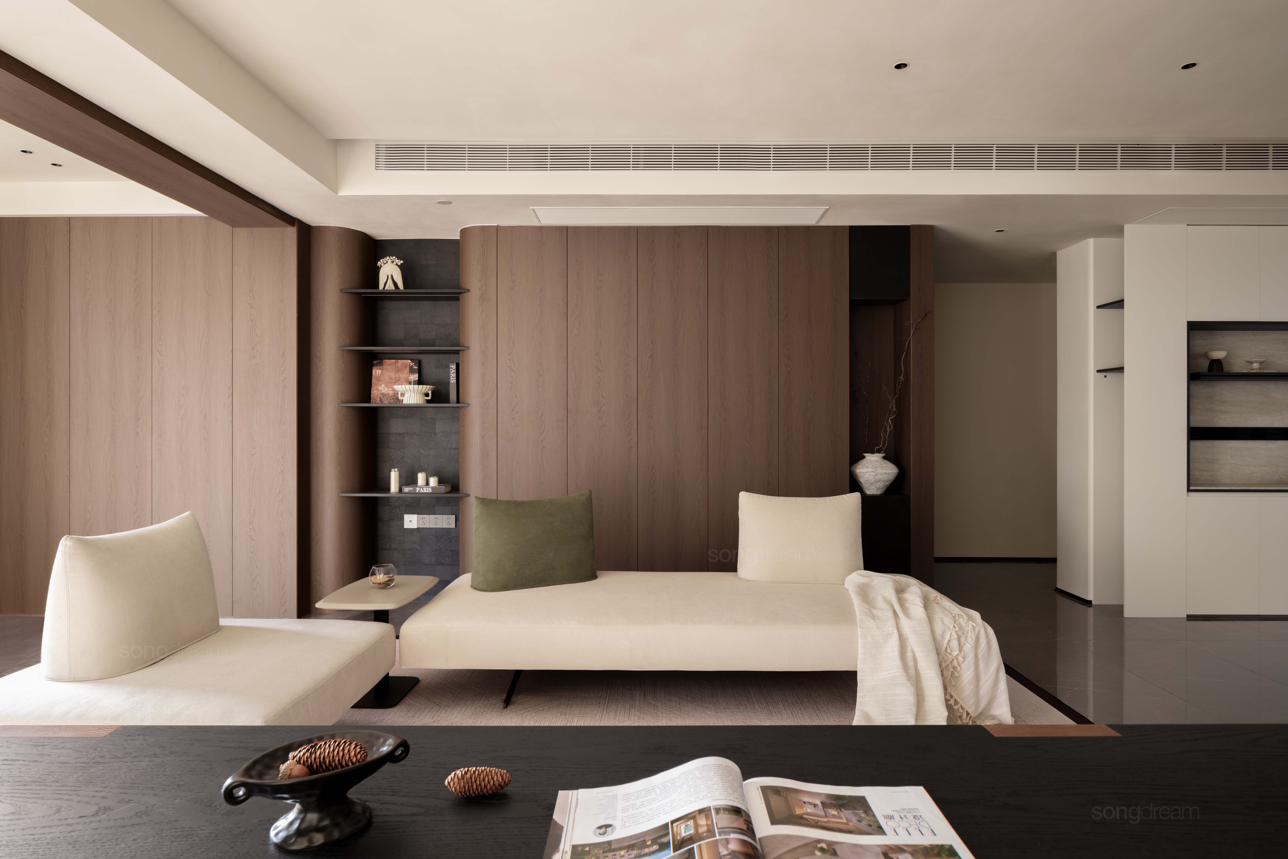 空間因家具而生動。本案以自然木紋與簡練線條,融合溫潤質(zhì)感與現(xiàn)代美學,營造沉穩(wěn)、舒適的生活氛圍。