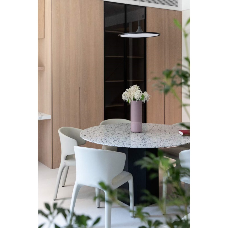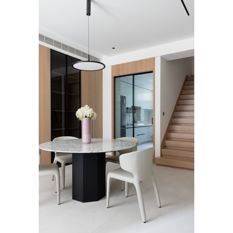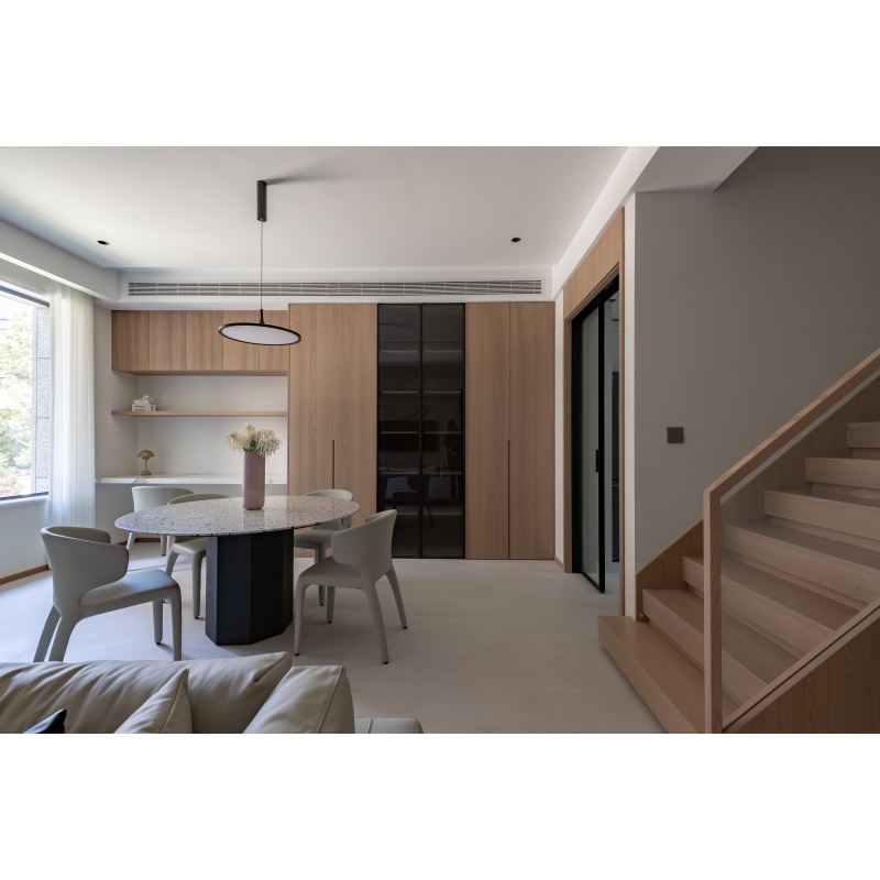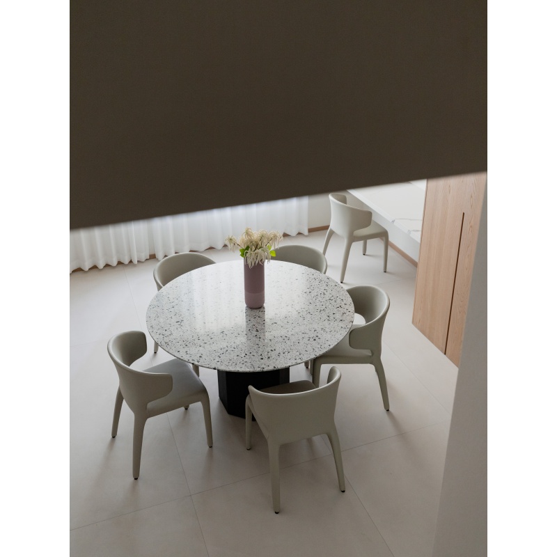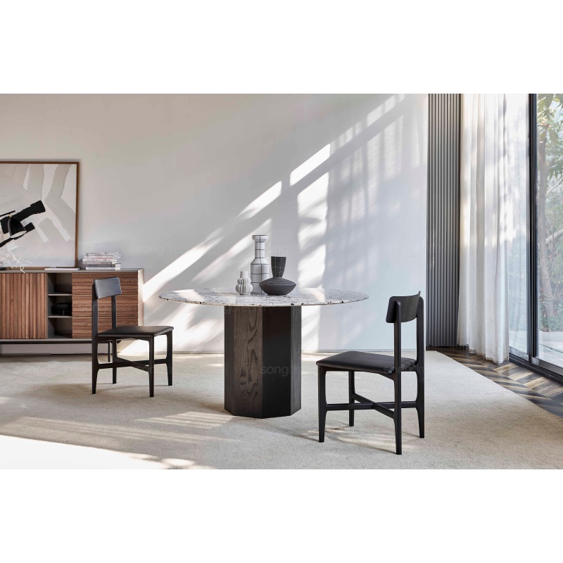Black melon seed terrazzo is warm and simple, while black oak wood is elegant and elegant
