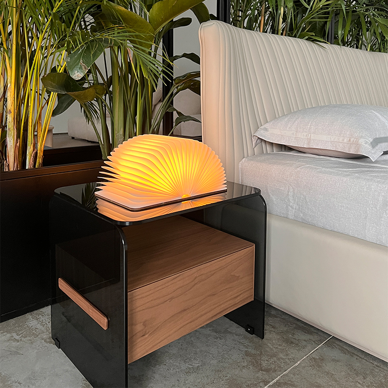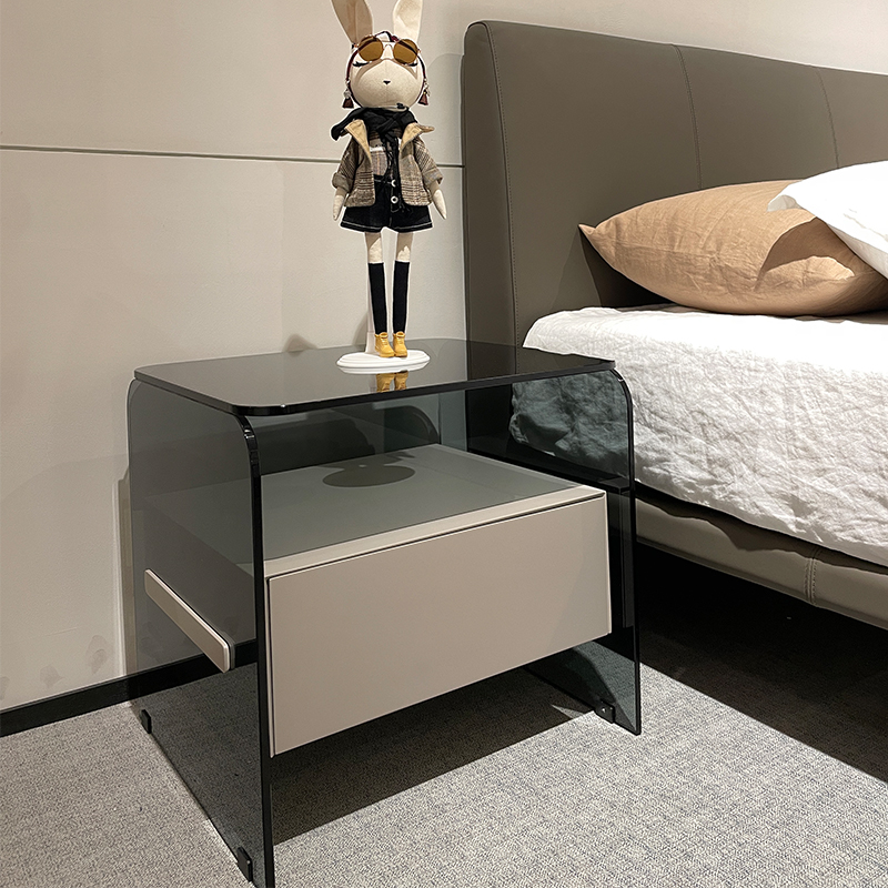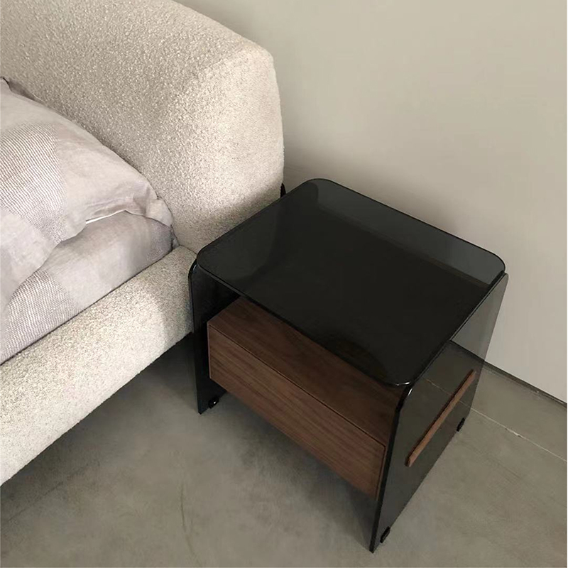 Glass and wood combination of light and unique bedside table