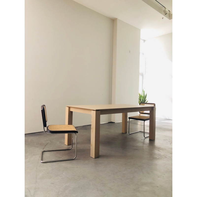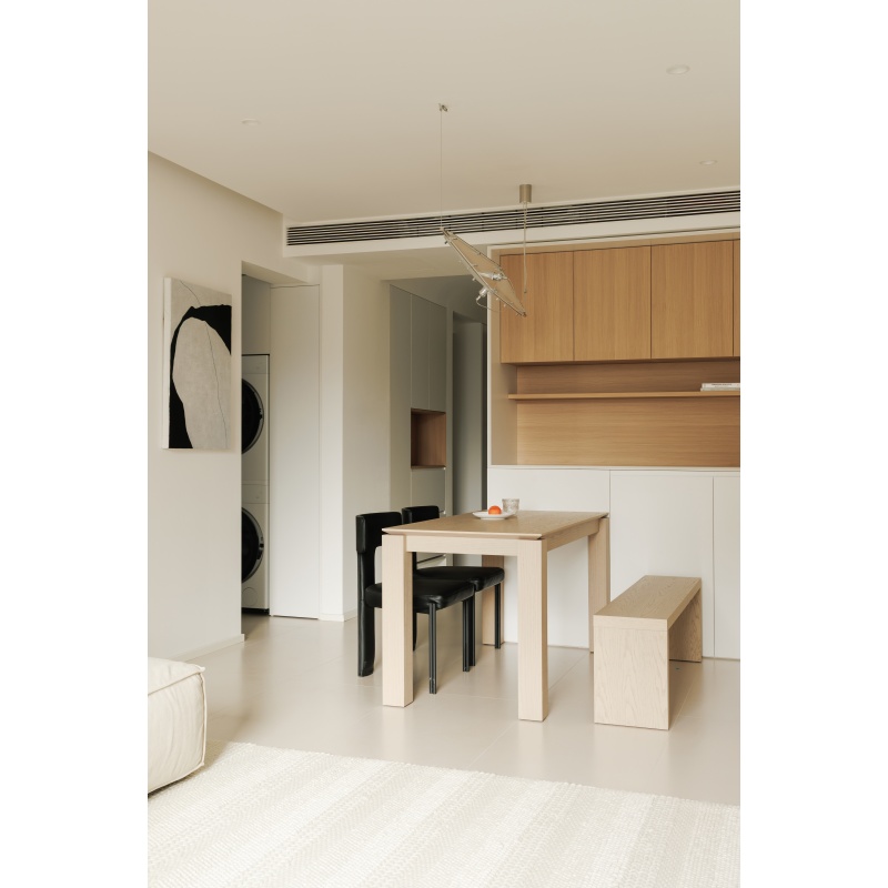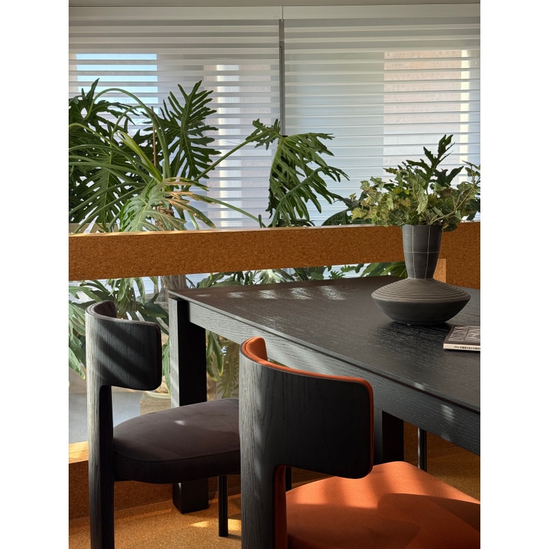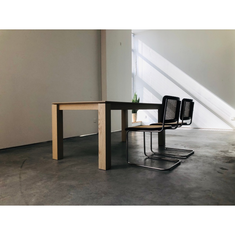 方形桌腿搭配鏤空小邊沿的設(shè)計把厚重和輕盈完美結(jié)合