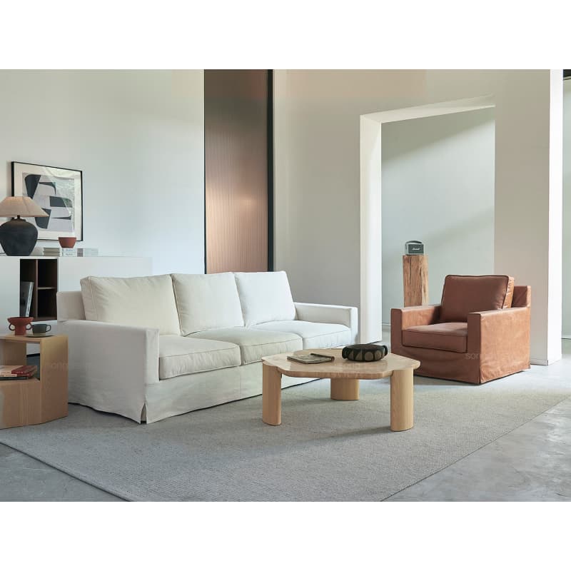 棉麻質(zhì)地自然親膚,有美式的休閑也有法式的復(fù)古。一款沙發(fā)多種搭配,不變的是舒適體驗(yàn)!