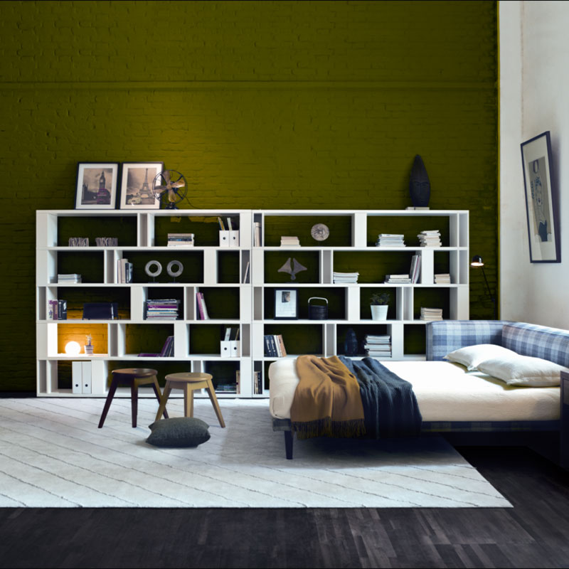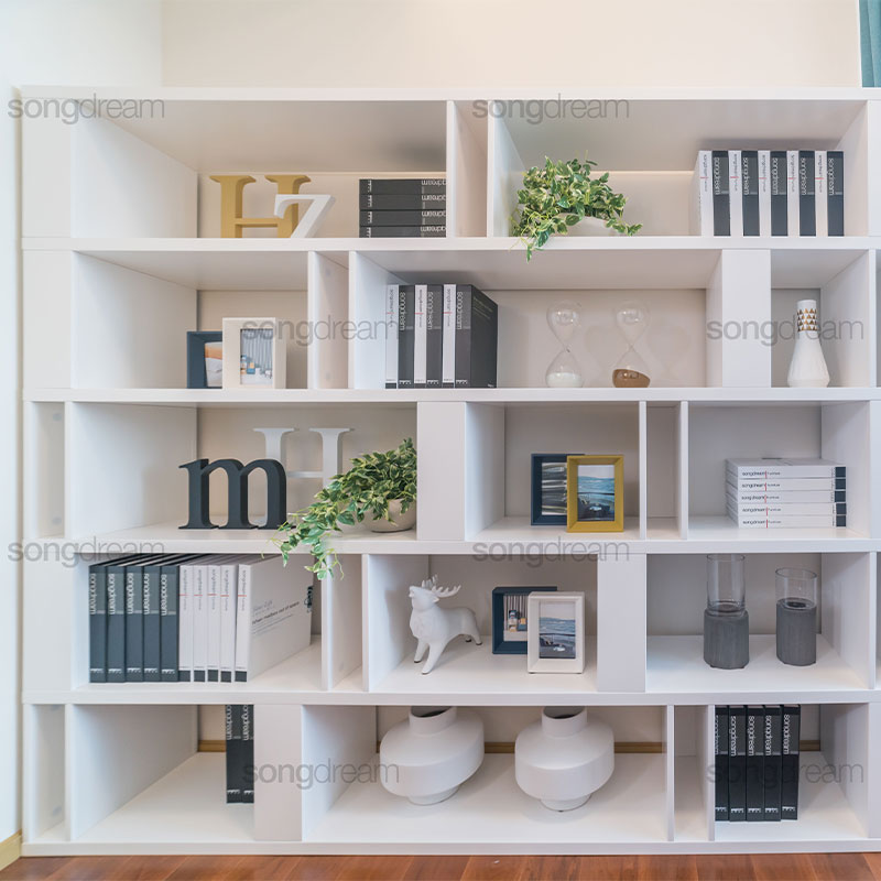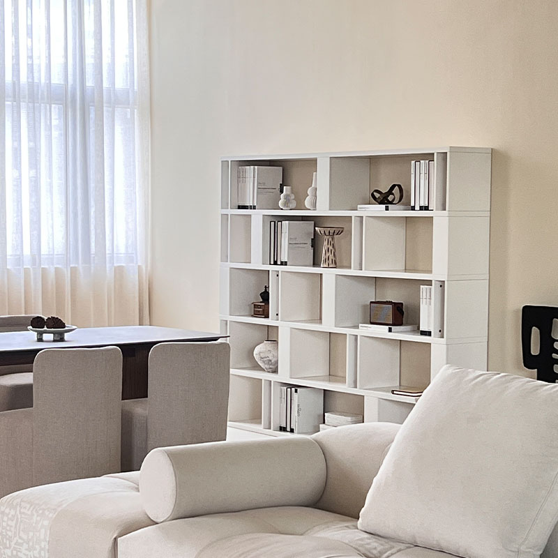 由多個小盒子組合而成的書架,靈巧別致。即便什么都不擺也是一件藝術品;