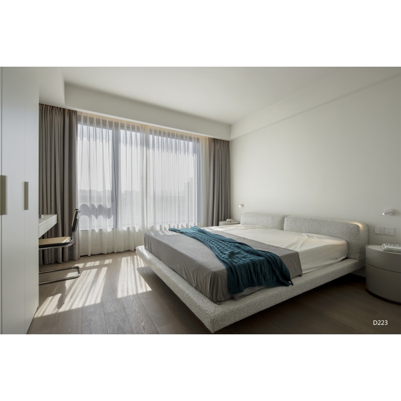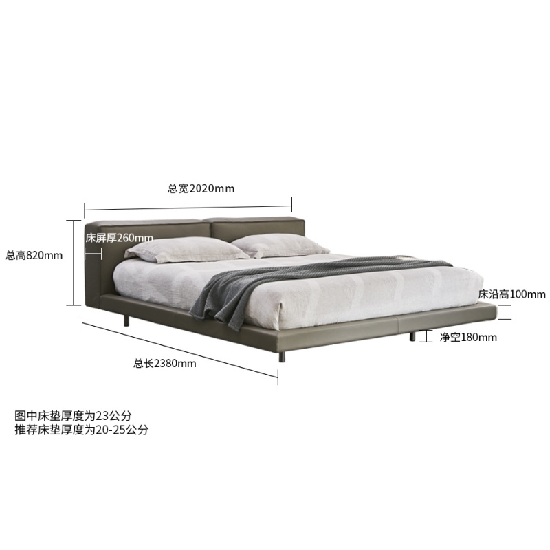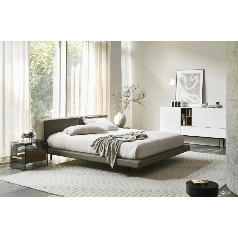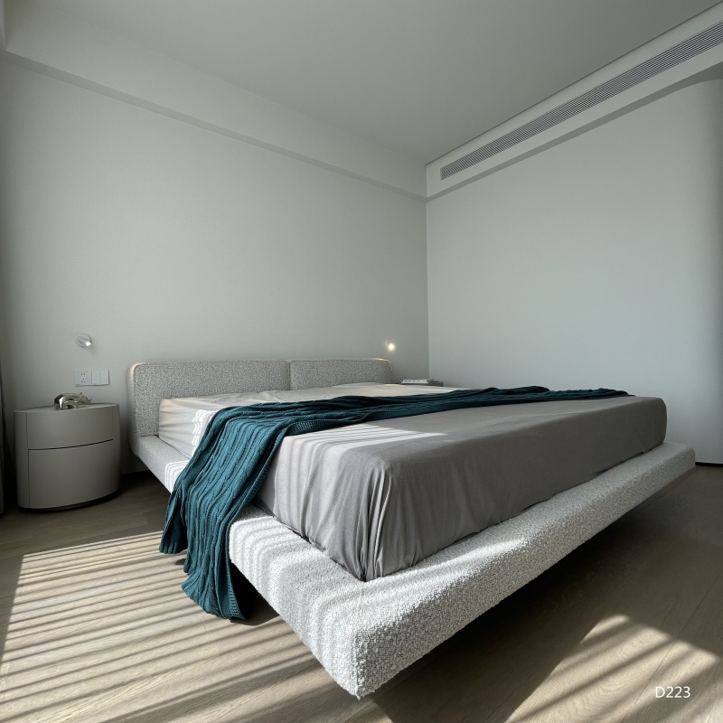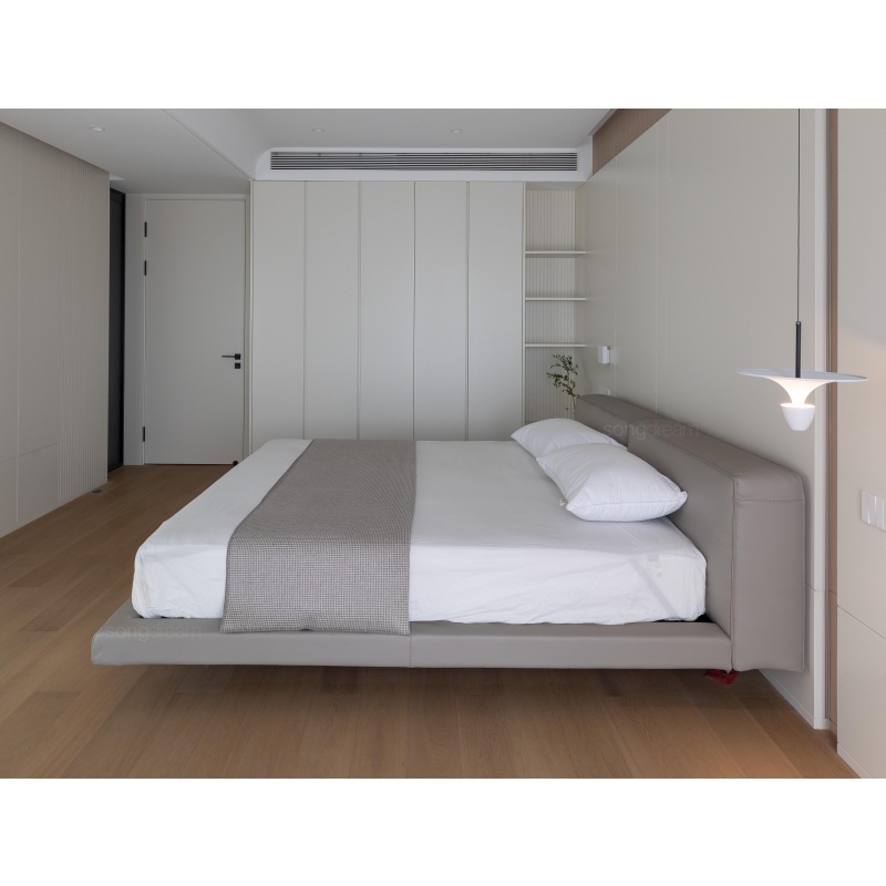 懸浮床體的設(shè)計結(jié)合寬厚的床屏,簡潔大方又舒適