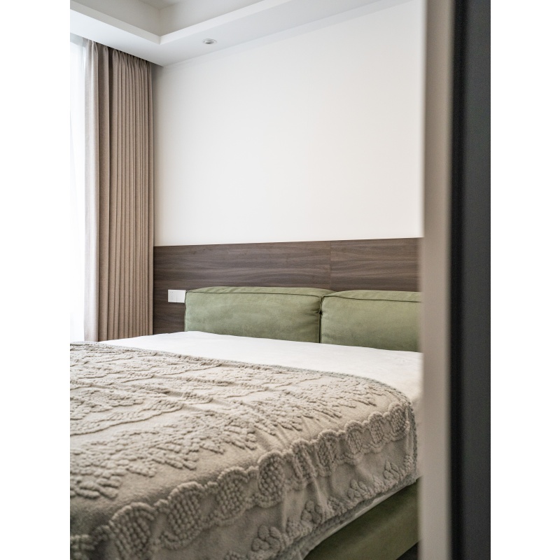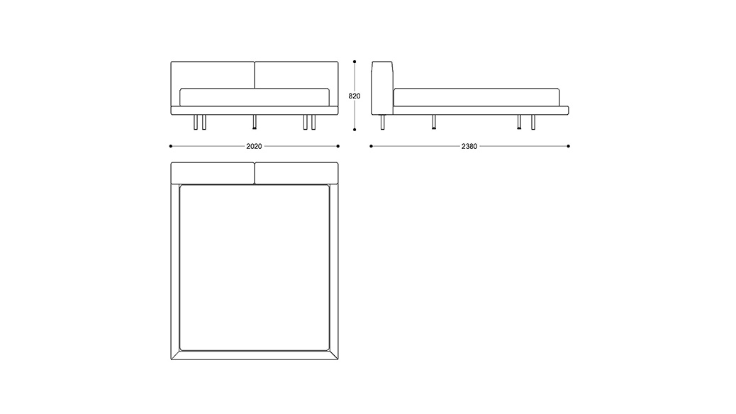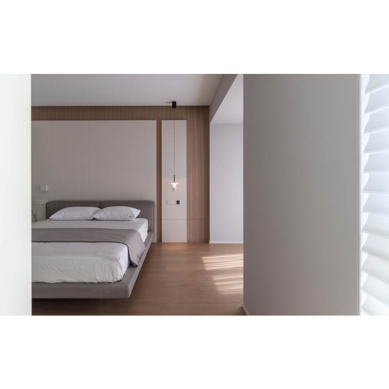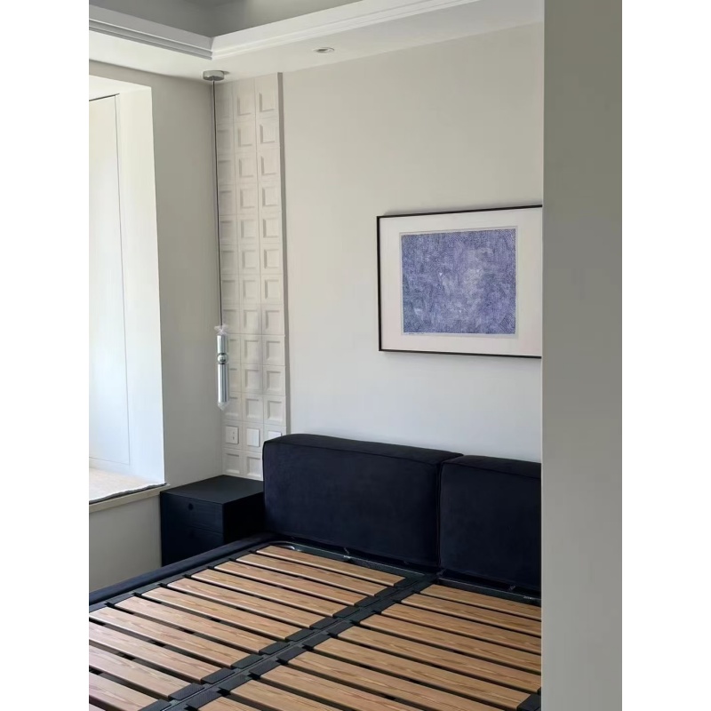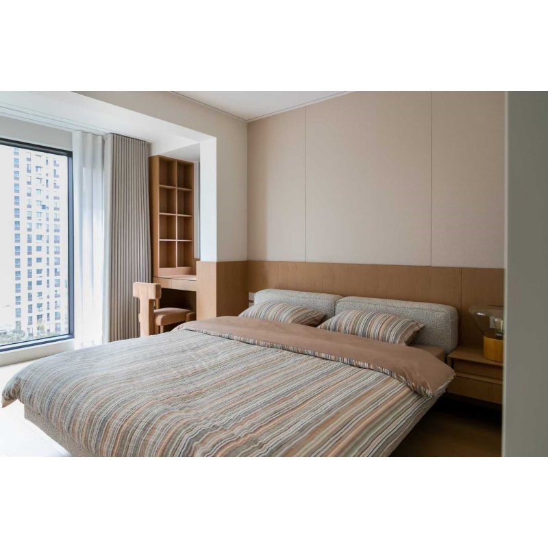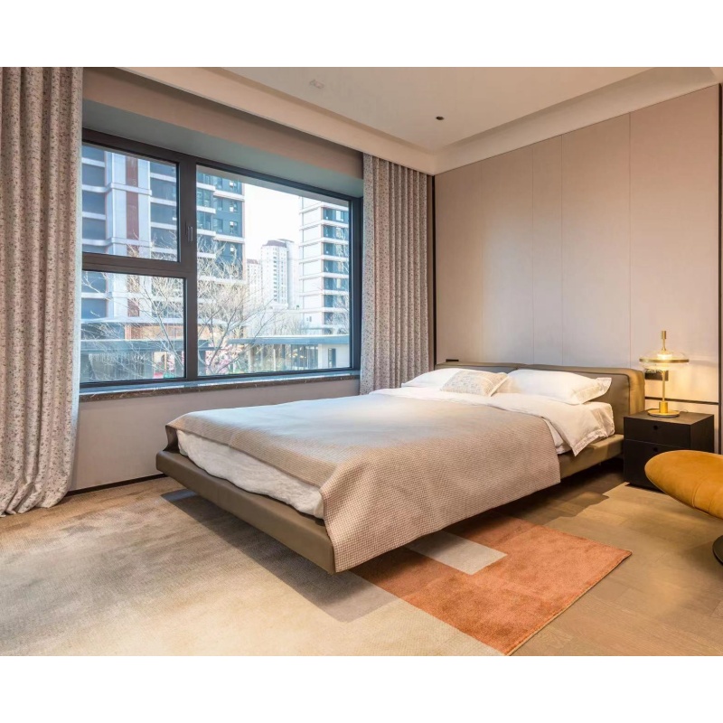 懸浮床體的設(shè)計結(jié)合寬厚的床屏,簡潔大方又舒適