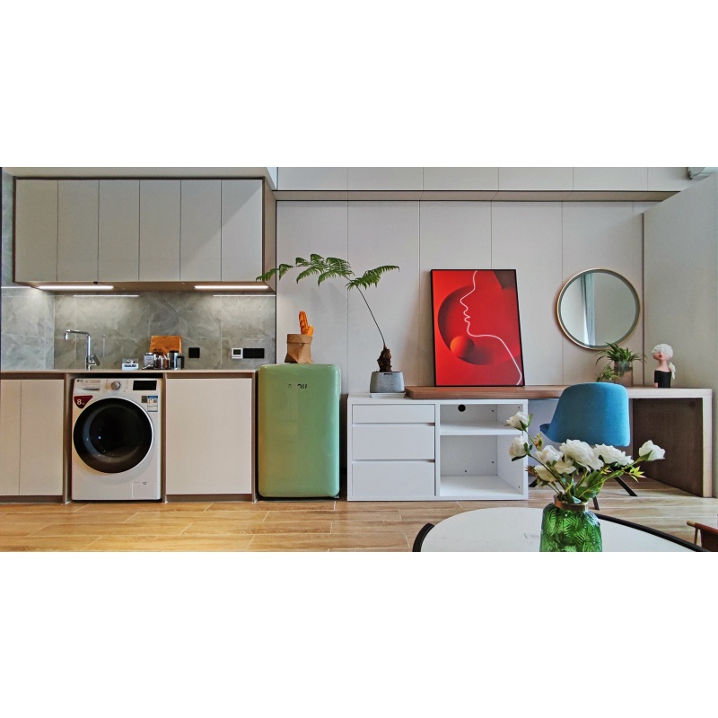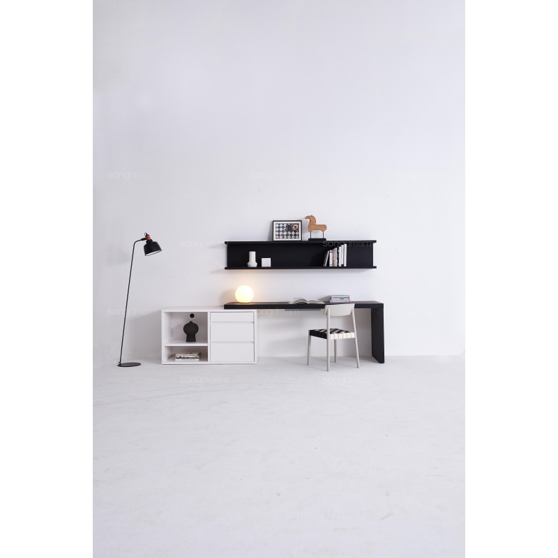 附柜和搭板的組合使得書桌可以適配多種空間尺寸,可同時供兩人使用