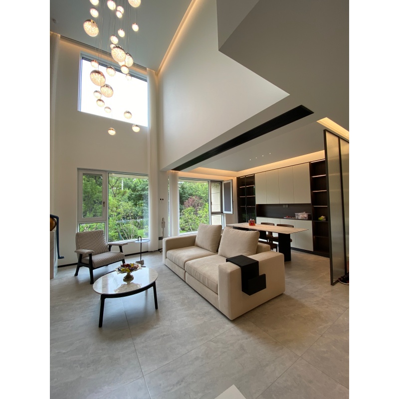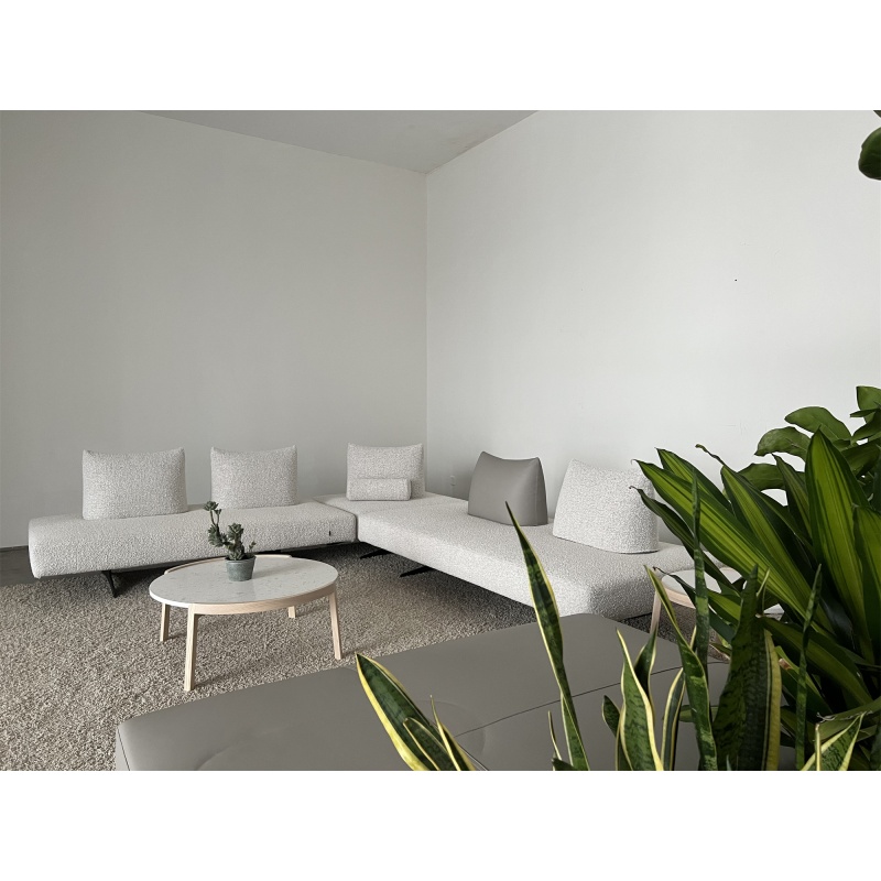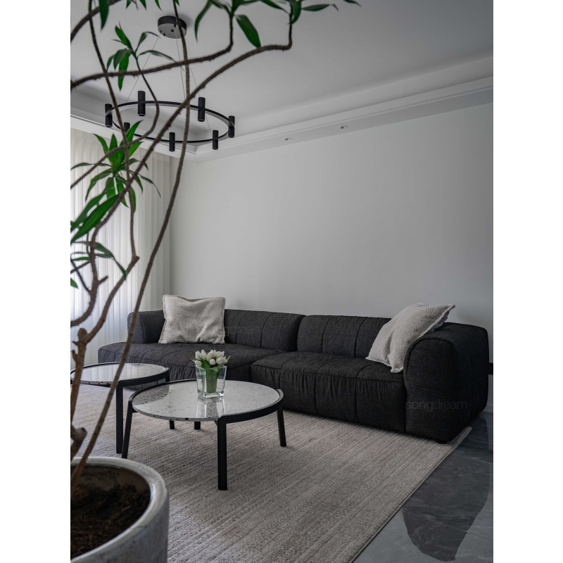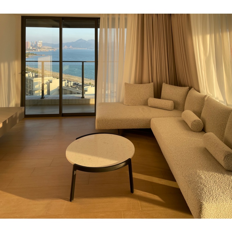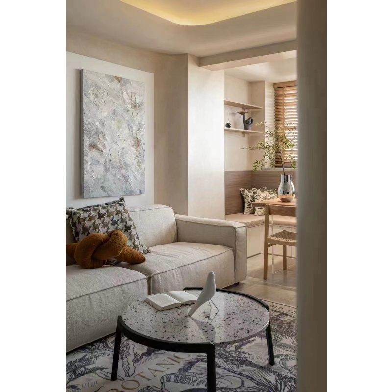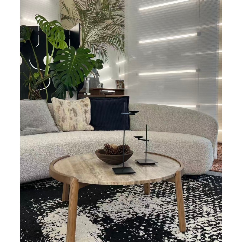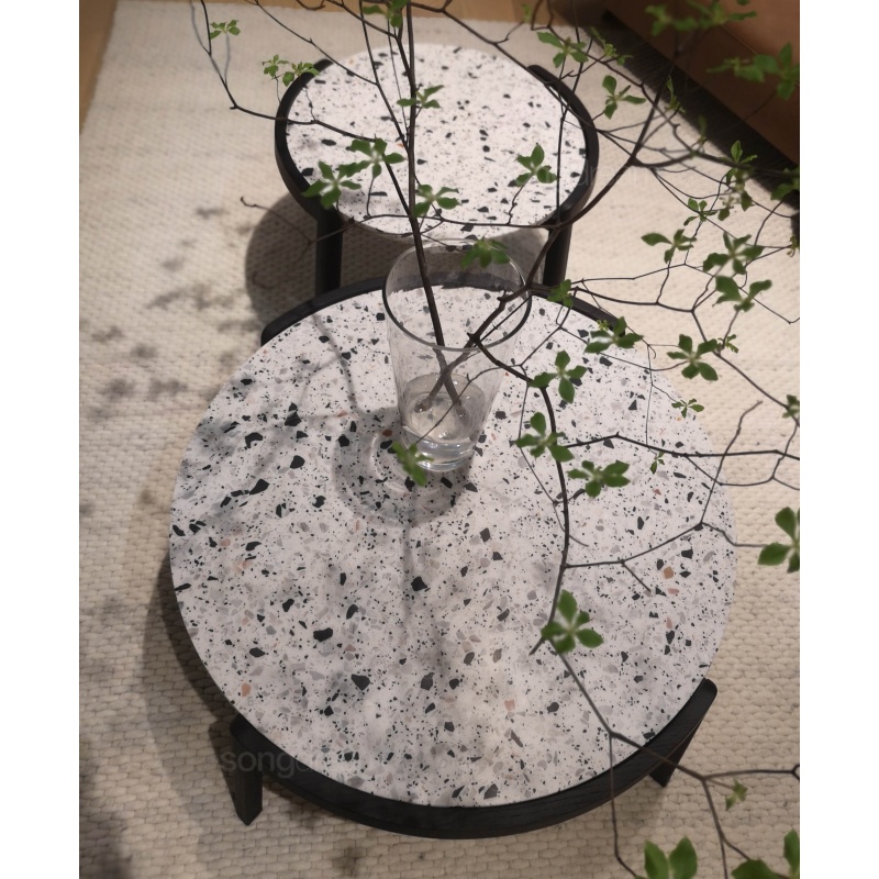 托盤茶幾簡(jiǎn)便輕盈,實(shí)木和水磨石的結(jié)合相映成趣
