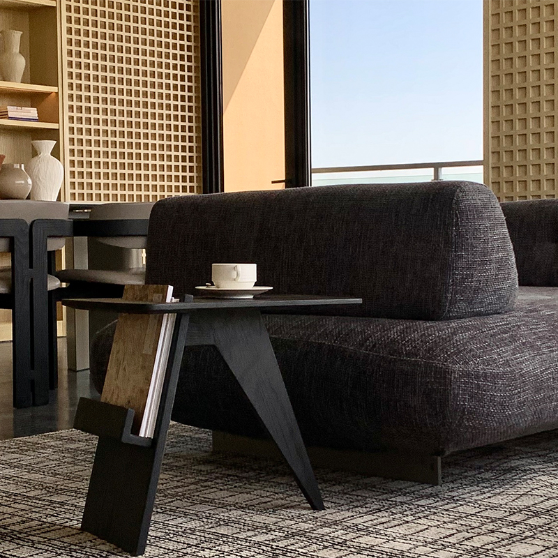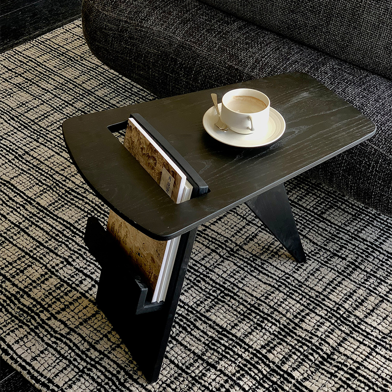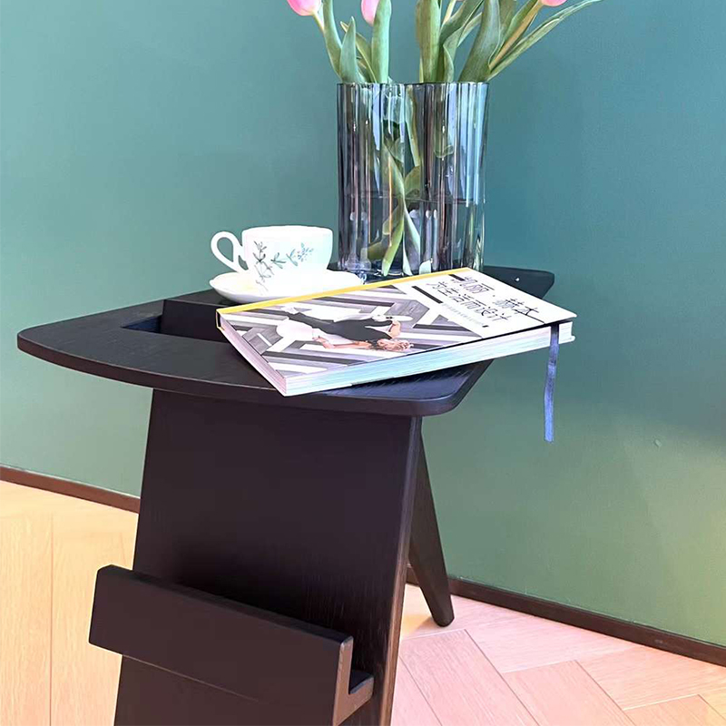 全實(shí)木打造的小邊幾兼有雜志架功能